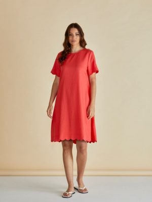 Sale!Easygoing Linen Blend Sleeveless Crew Neck Midi Dress – Khaki