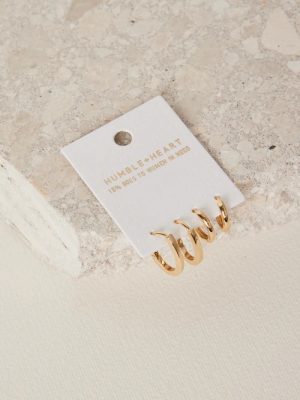 • Oblong Hoop Huggie Set Earrings – Gold