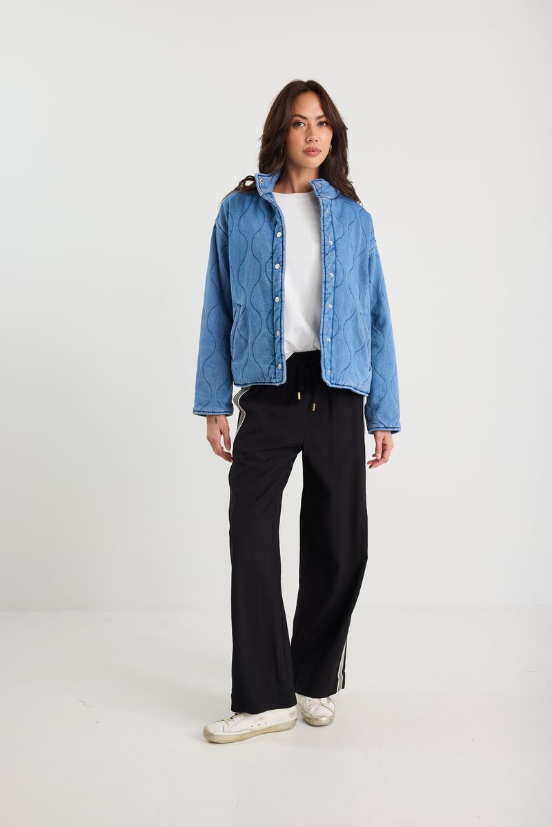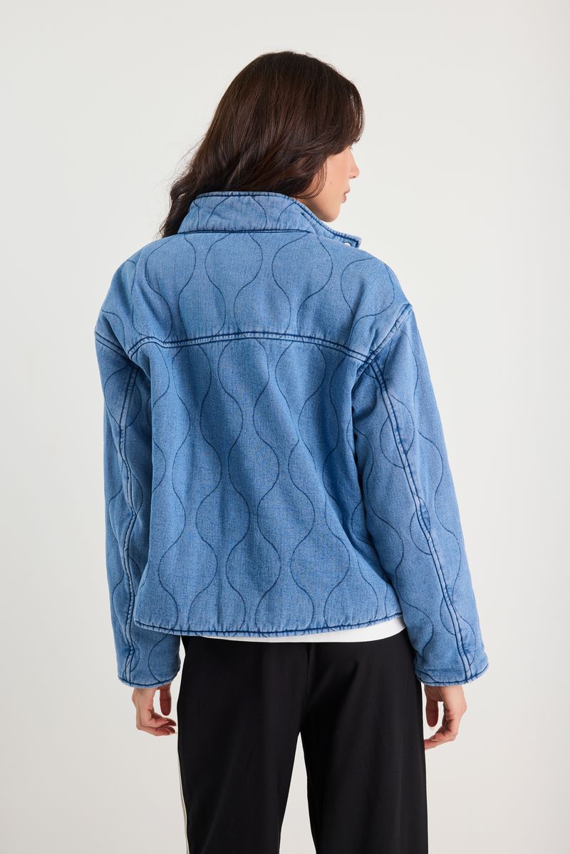– Wave-quilted denim outer with soft hand-feel