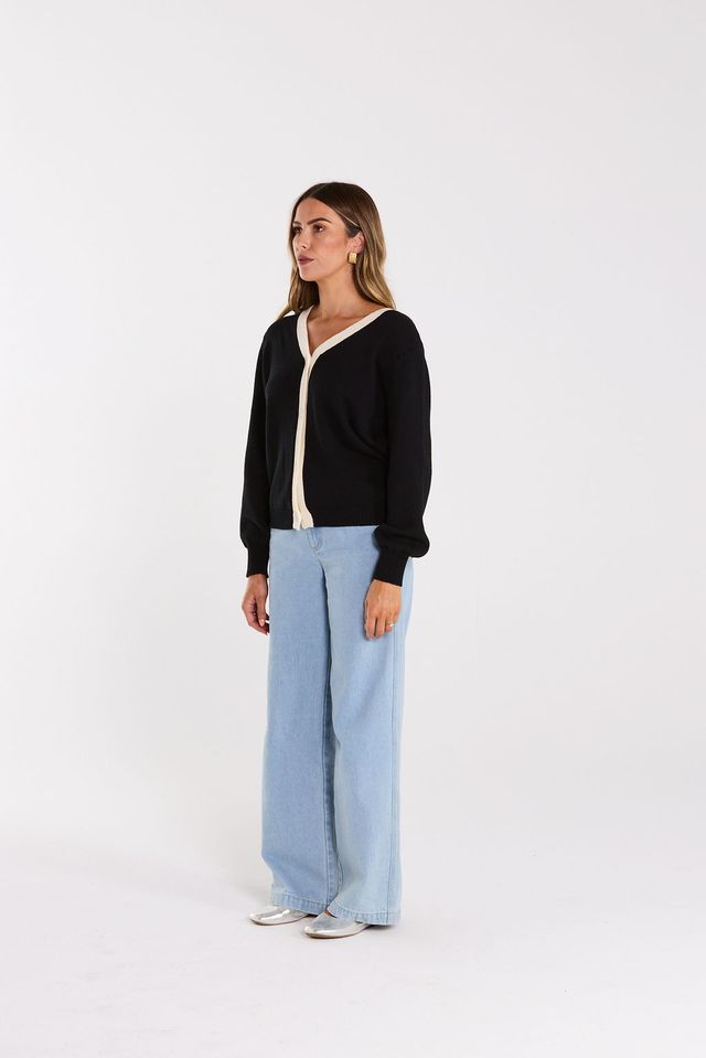 Your softest layer of armour. The Armour Cardigan pairs a sleek black base with creamy contrast ribbing and buttons – finished with a bold bow at the back. Button it up front, own the look from behind. Because armour can be effortlessly sharp.