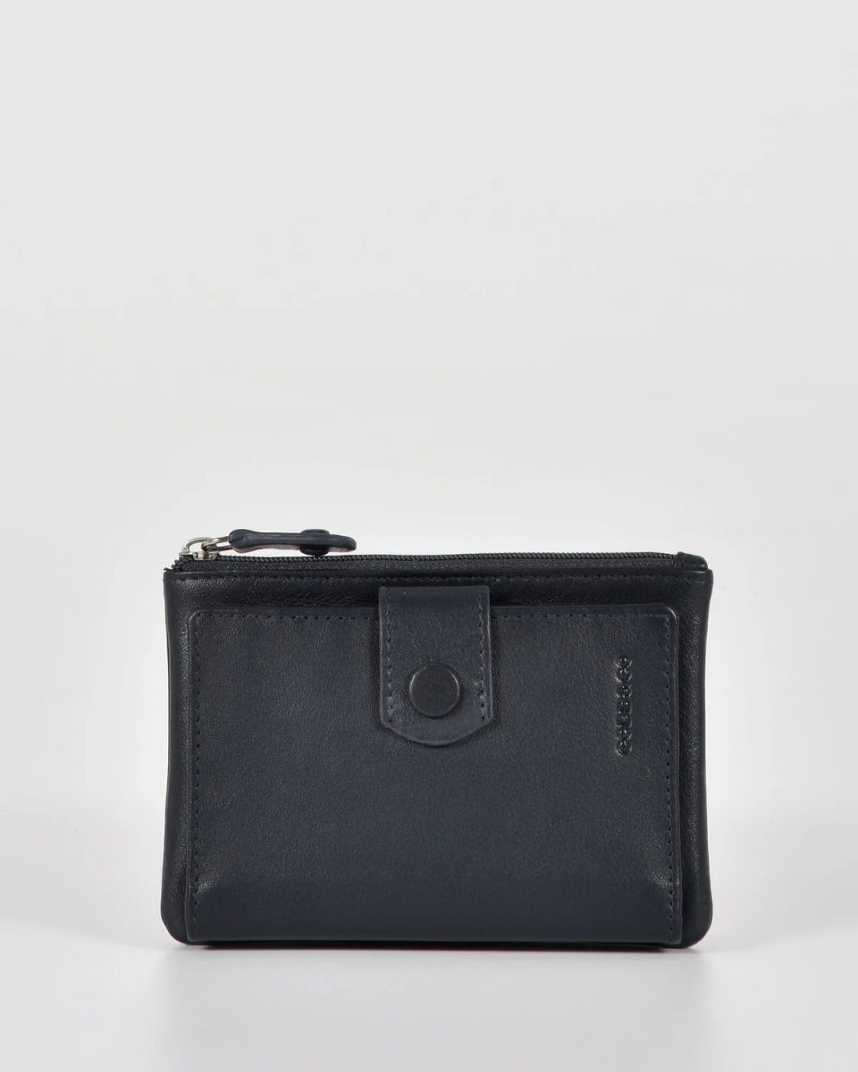 Collins RFID Safe Compact Leather Wallet – Navy