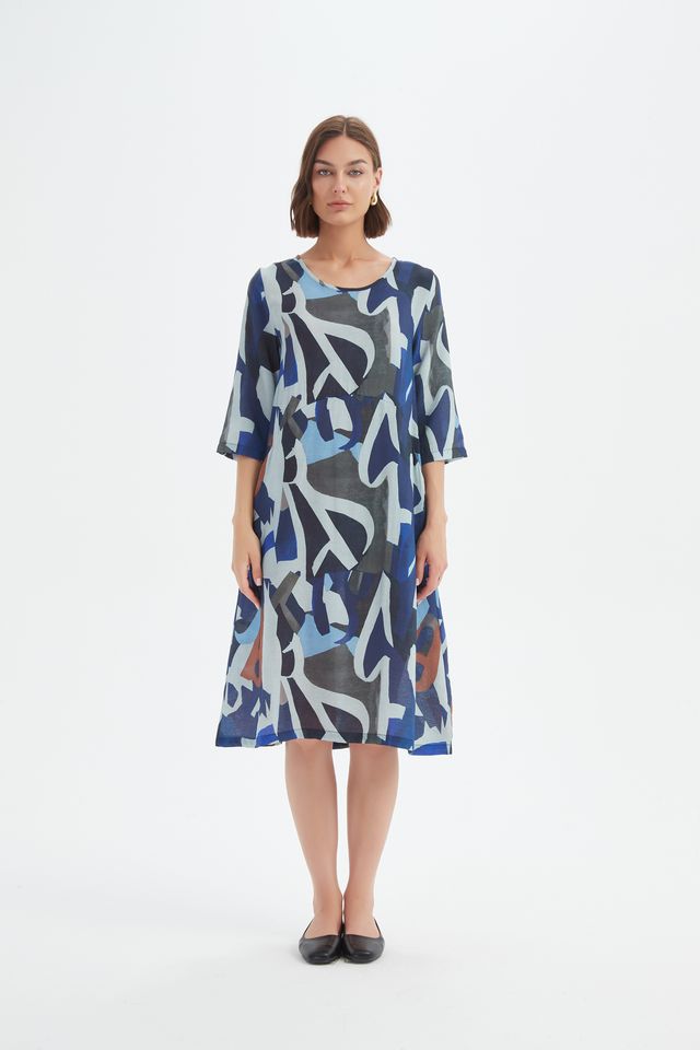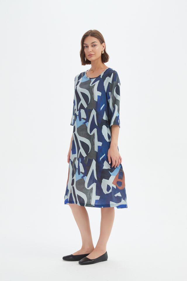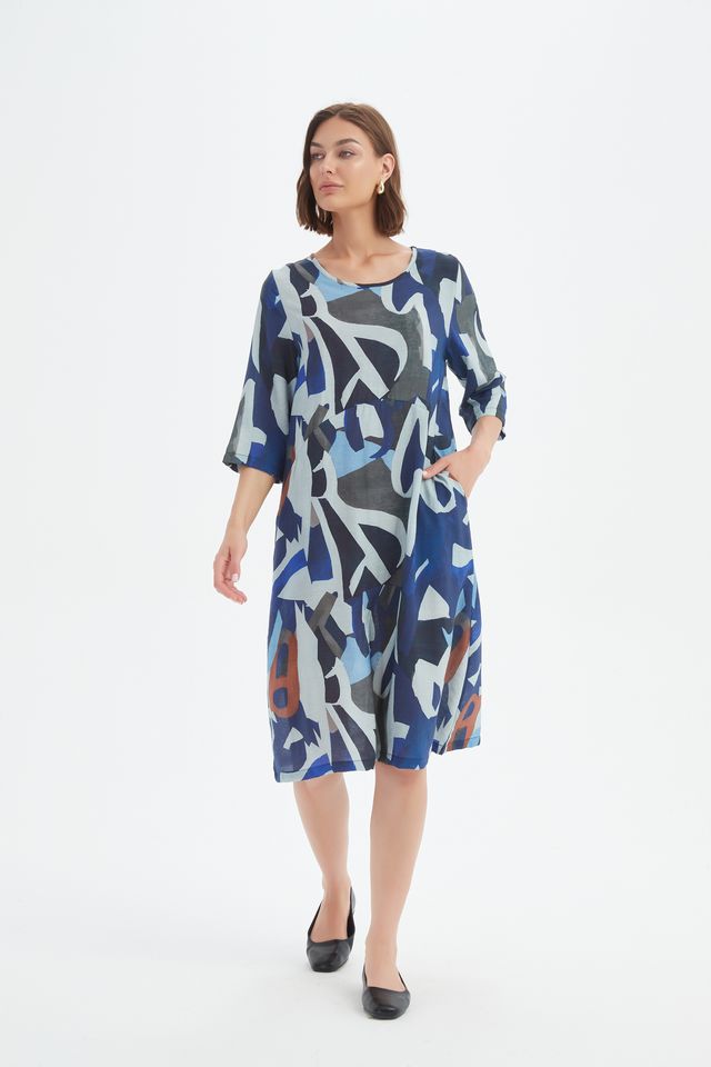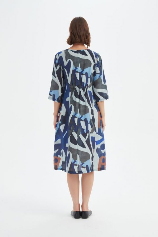 The Curve Seam Print Dress effortlessly blends classic and contemporary styles with its curved seam and gathered back detailing. Featuring a midi length and 1/2 sleeves, this dress also offers the added convenience of pockets, making it perfect for both casual and special occasions.