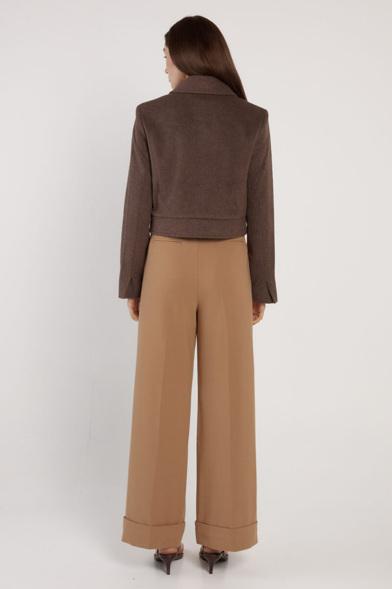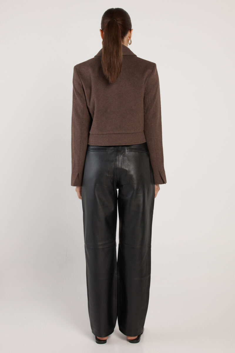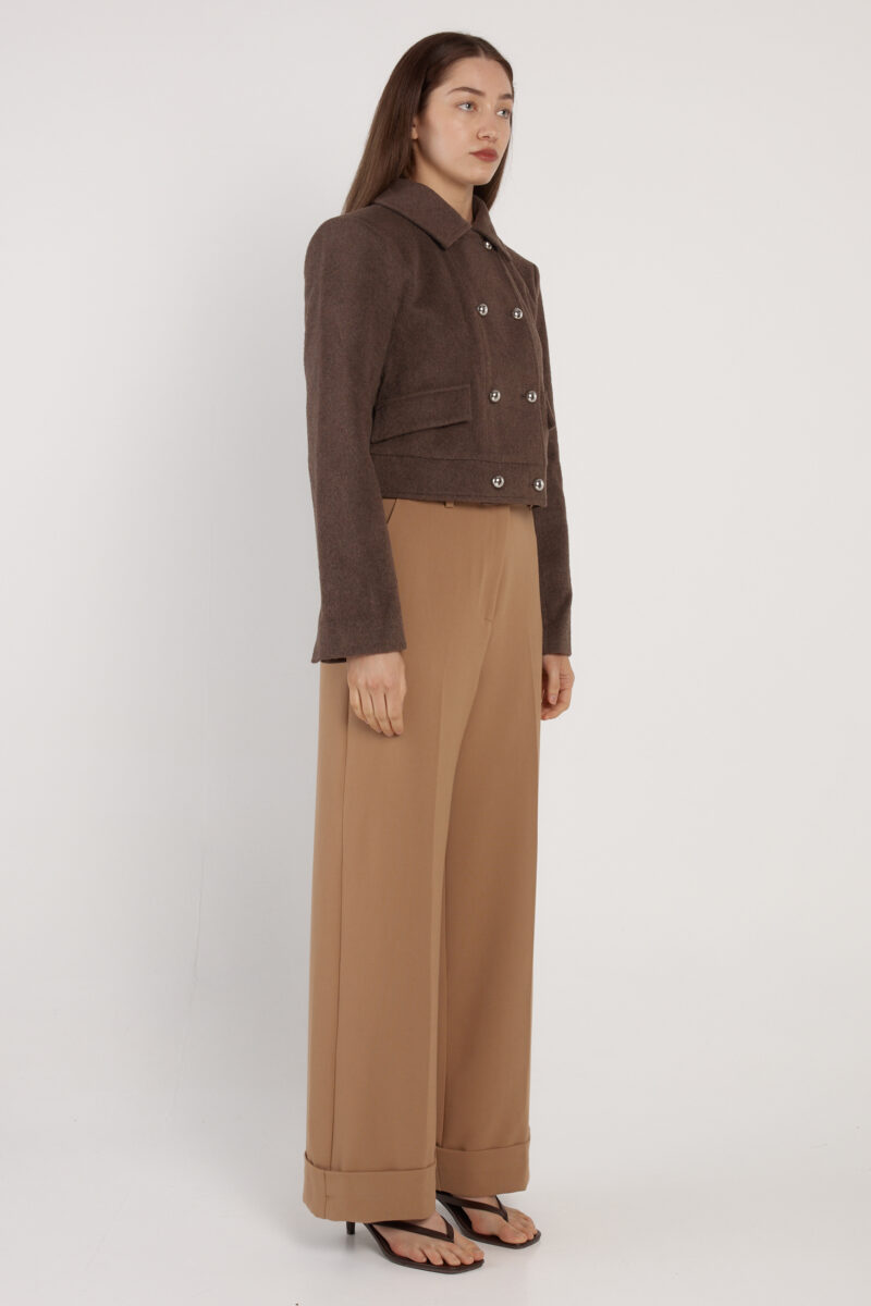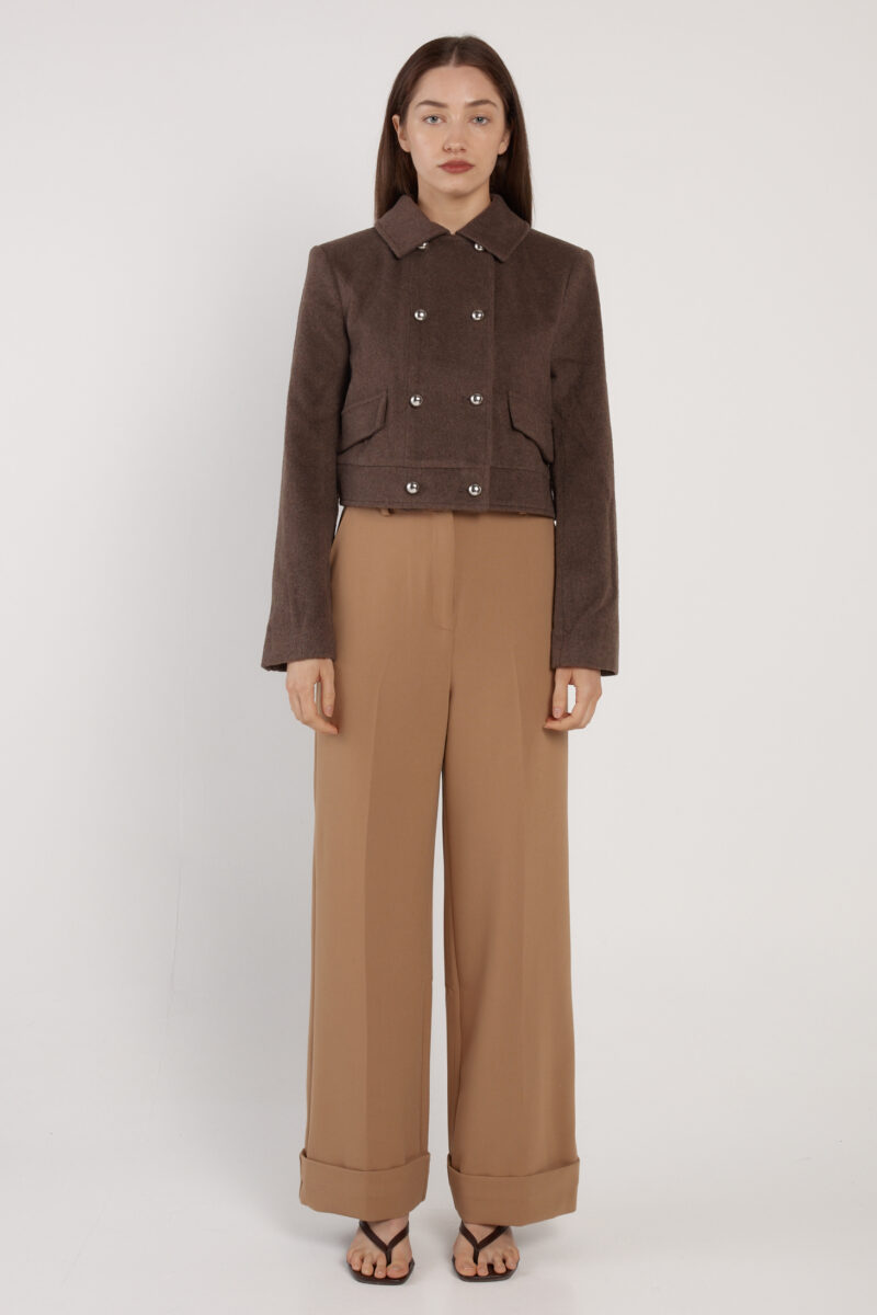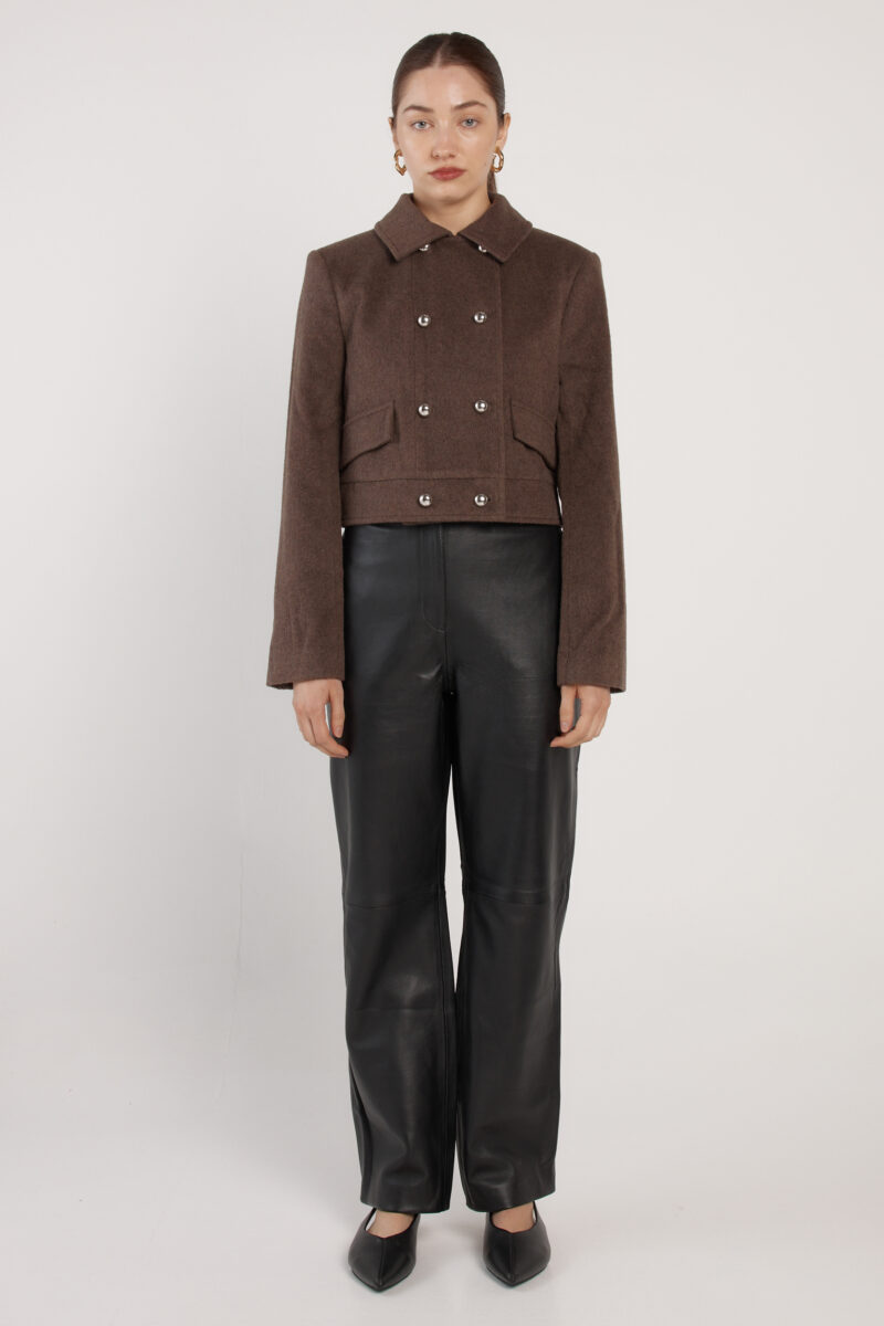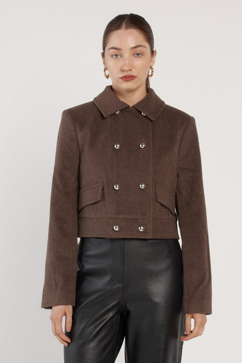 The Devyn Wool Blend Cropped Jacket delivers sharp structure in a modern proportion. Tailored through the body with a double-breasted closure, it feels distinctly polished. The cropped silhouette adds a contemporary edge while remaining effortlessly wearable. A sophisticated layering piece for transeasonal styling.