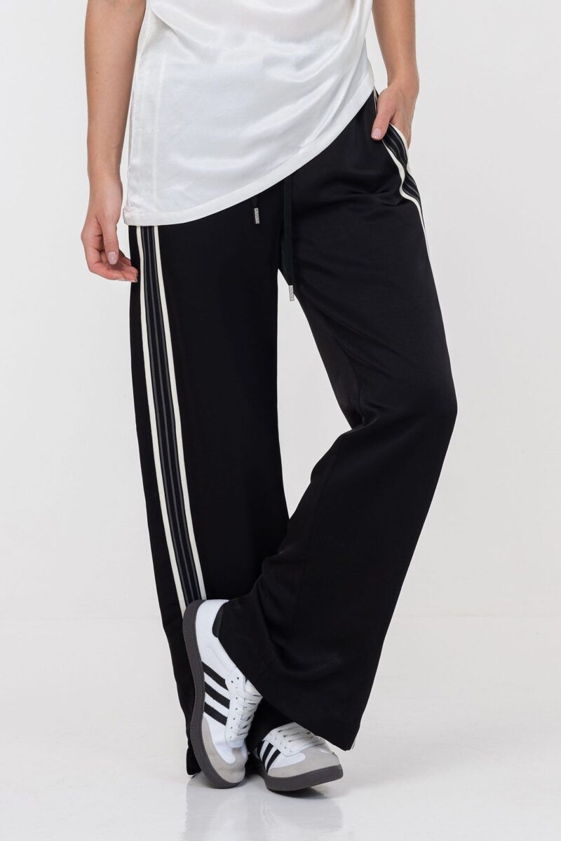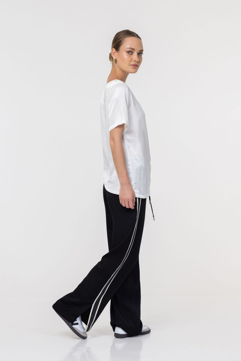 Effortless, flattering, and made for all-day wear, the Diego Pant brings a fresh feel to everyday dressing. Designed with an elasticated waistband and adjustable drawcord, this relaxed wide-leg style is all about comfort with a polished edge. Subtle sheer side trim adds lightness and movement, making these an easy go-to from day through to evening.