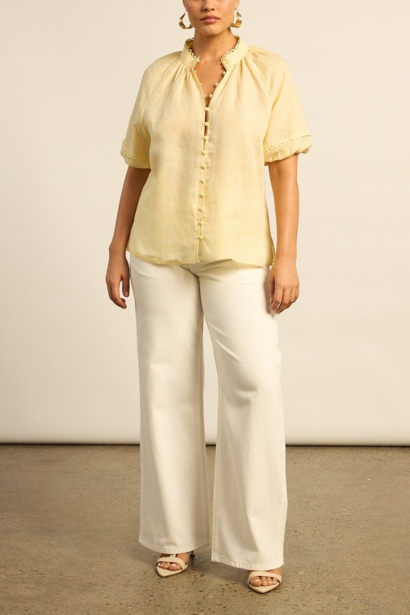 The drift is defined by its high neck-stand and softly gathered raglan sleeves, finished with elasticated cuffs for subtle shape. Scalloped trims bring feminine detail, while an elevated button-up front ensures versatility. Refined and timeless, it’s a wardrobe staple designed to endure.