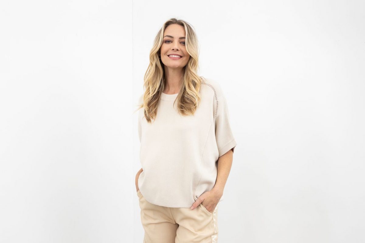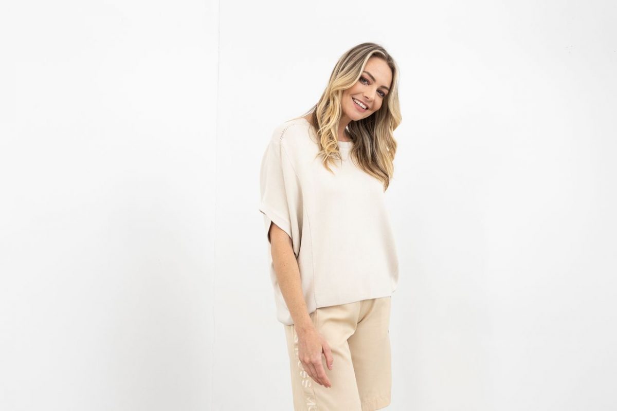 The Moss Ella Knit Top in Champagne is light, comfy, and so easy to wear.