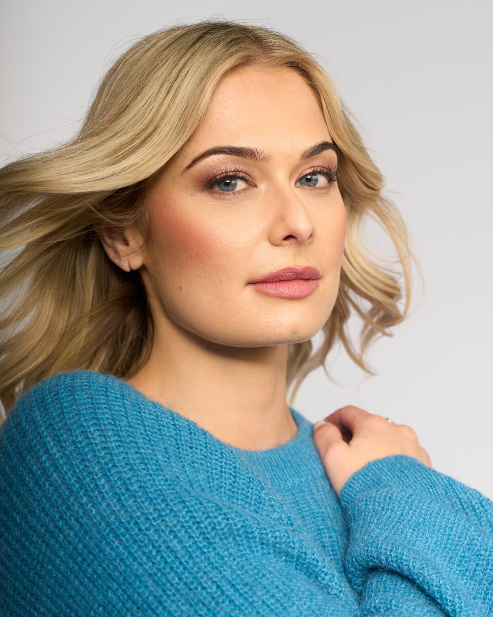 Oversized knit sweater in Ultramarine, a vibrant blue, crafted from a soft blend including mohair and wool for warmth and texture. Featuring raglan balloon sleeves and a round neckline, this sweater offers a relaxed, statement making silhouette with a cosy, luxurious feel.