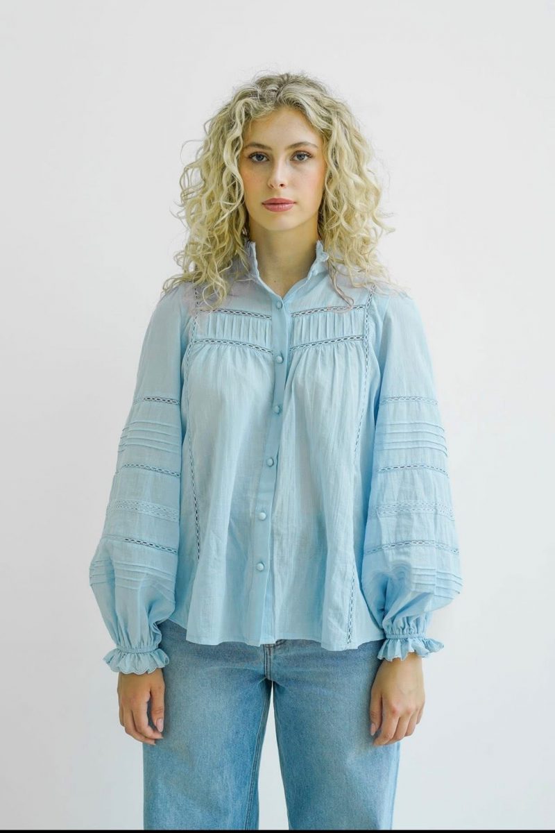 Crafted from feminine soft cotton, this demure Soft Blue piece offers timeless styling for any occasion.