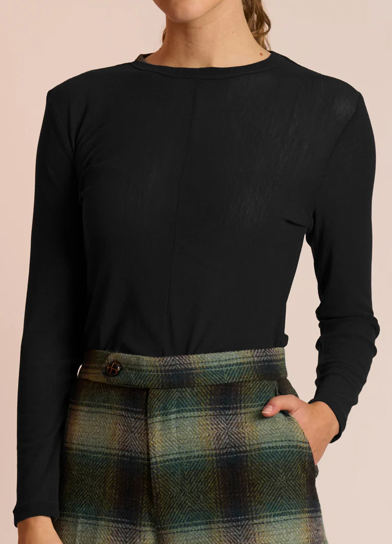 Designed with a high crew neckline, long sleeves, and centre front and back seams, it adds subtle structure to any outfit.