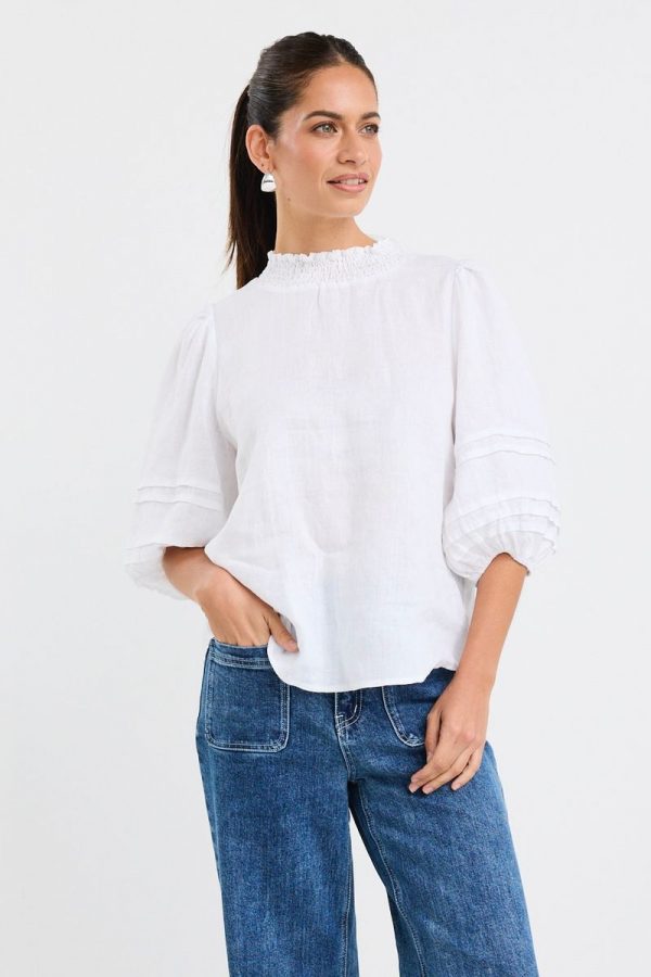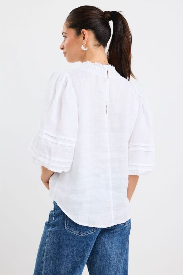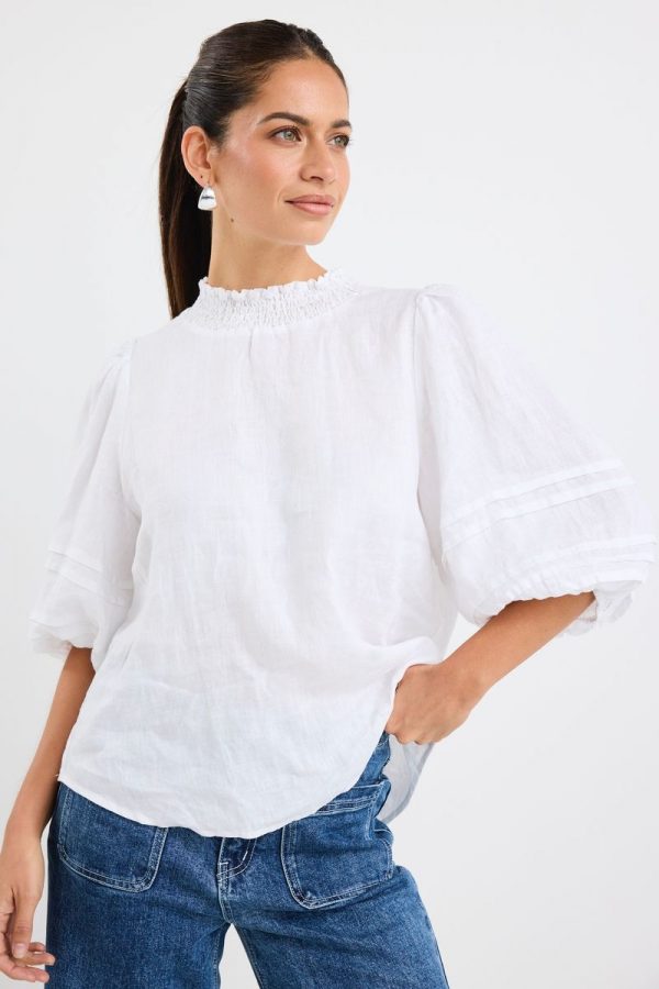 Elevate your everyday with the serene simplicity of this linen blouse. Crafted from 100% natural linen, it feels crisp yet soft against the skin, offering breathable comfort that carries you effortlessly through every season. The relaxed pull-on design is accented with a shirred neckline and voluminous sleeves, bringing an air of easy elegance to your wardrobe.