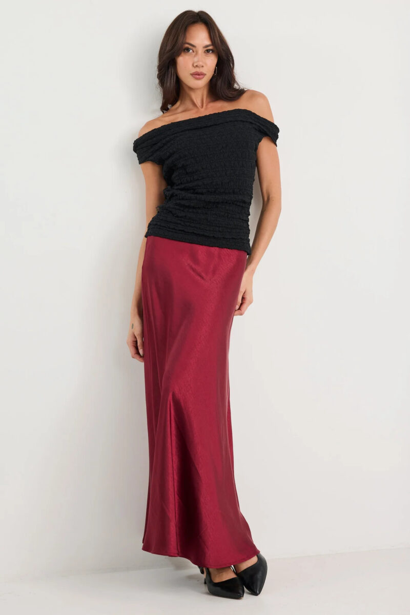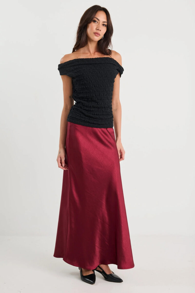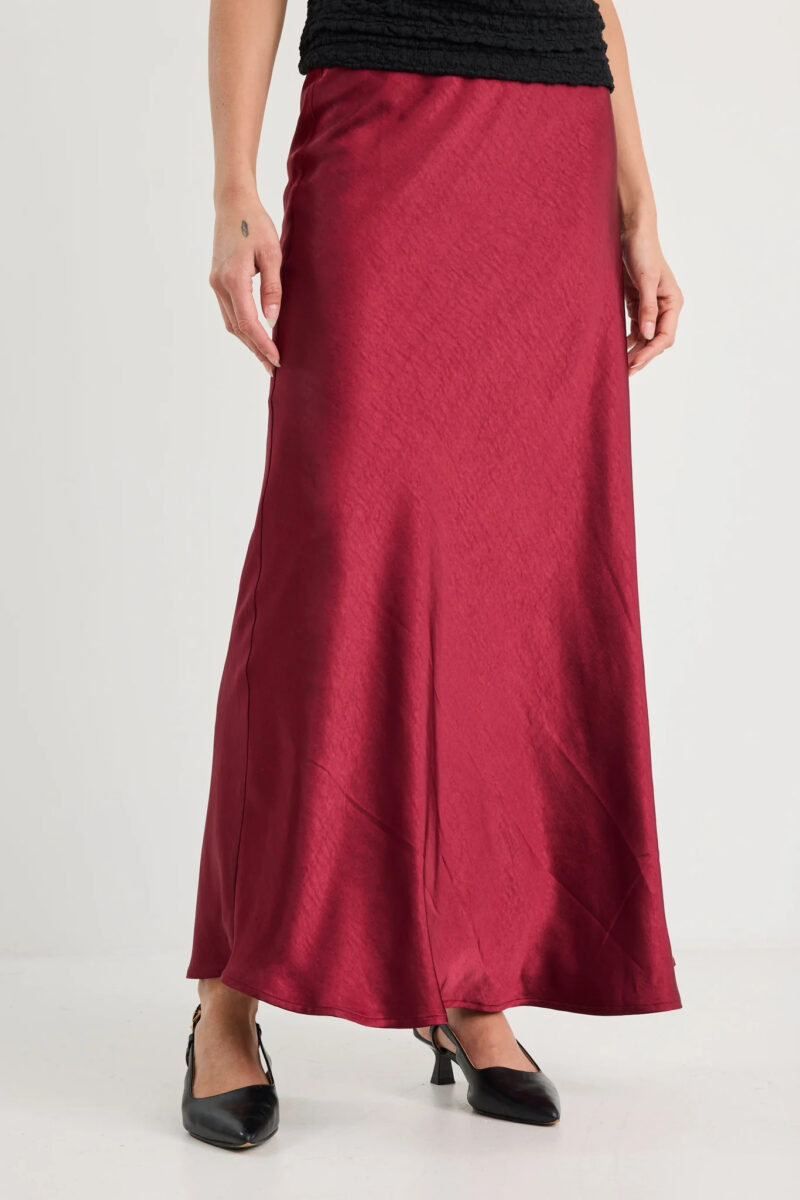 Bring a little drama to your everyday with the Preserve skirt, a silky, statement-making essential that moves with you. Cut on the bias for that ultra-flattering drape and finished in a rich burgundy satin, it’s your go-to for easy elegance.