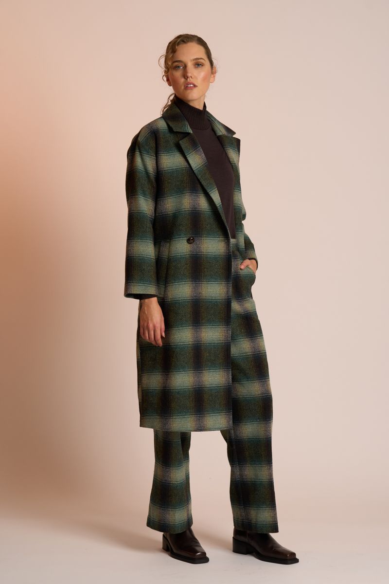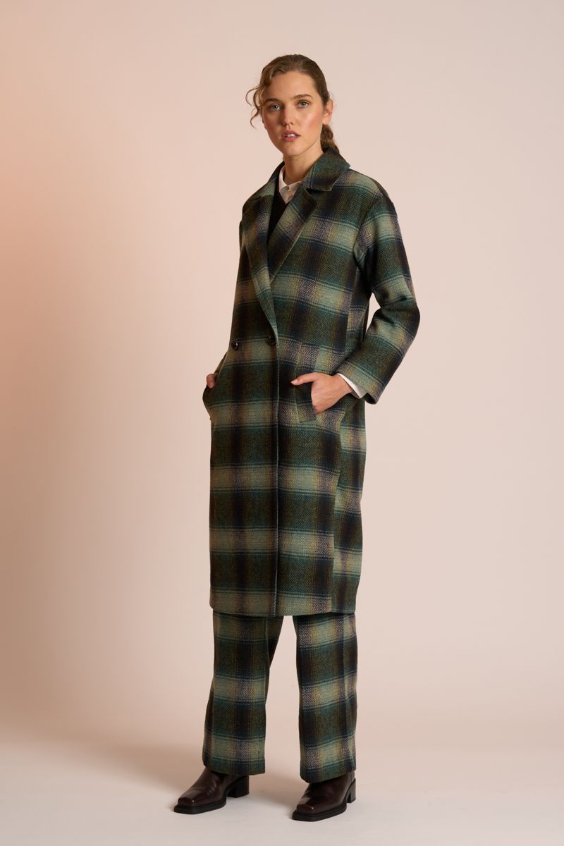 The Saxon Coat by Neris is a timeless winter classic. Crafted from a plush 50% wool blend and fully lined for warmth, it features a double-breasted front with vintage-inspired leather-look buttons. The straight silhouette is complemented by an open collar, practical side pockets, and an ornamental belt detail at the back for a tailored finish. A beautifully constructed coat designed to elevate your cold-weather wardrobe.