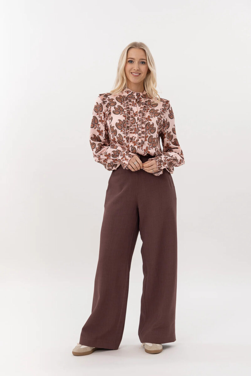 The Sienna Pant in Blushing Plum is a stunning seasonal essential, combining a relaxed fit with a flat front and elasticated back for comfort and style. Its beautifully draped fabric enhances movement, making it a versatile and elegant choice for any wardrobe.