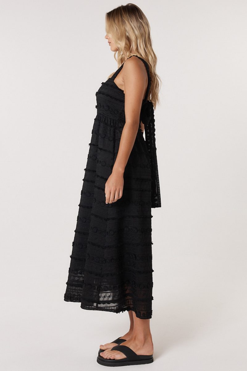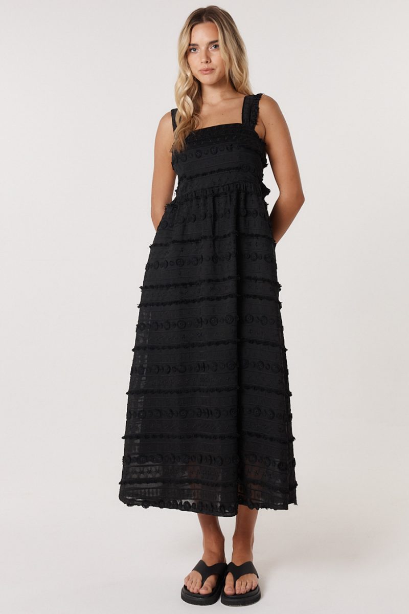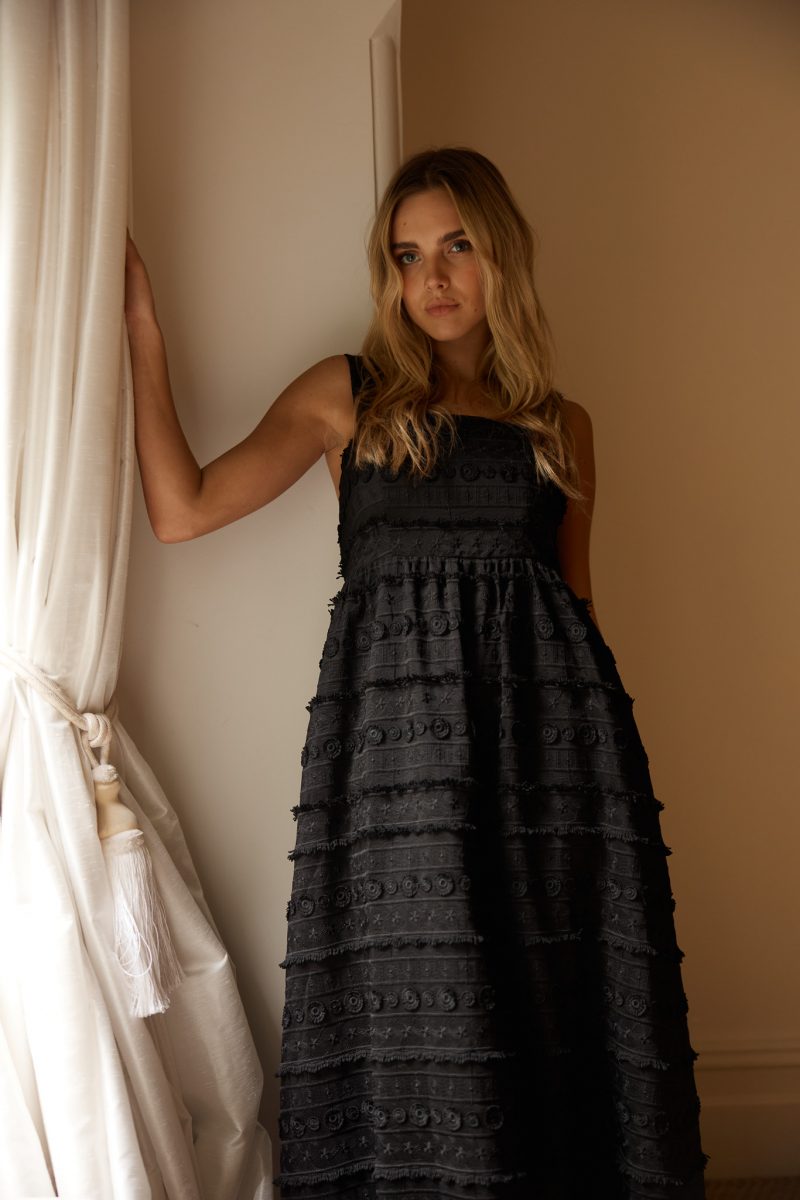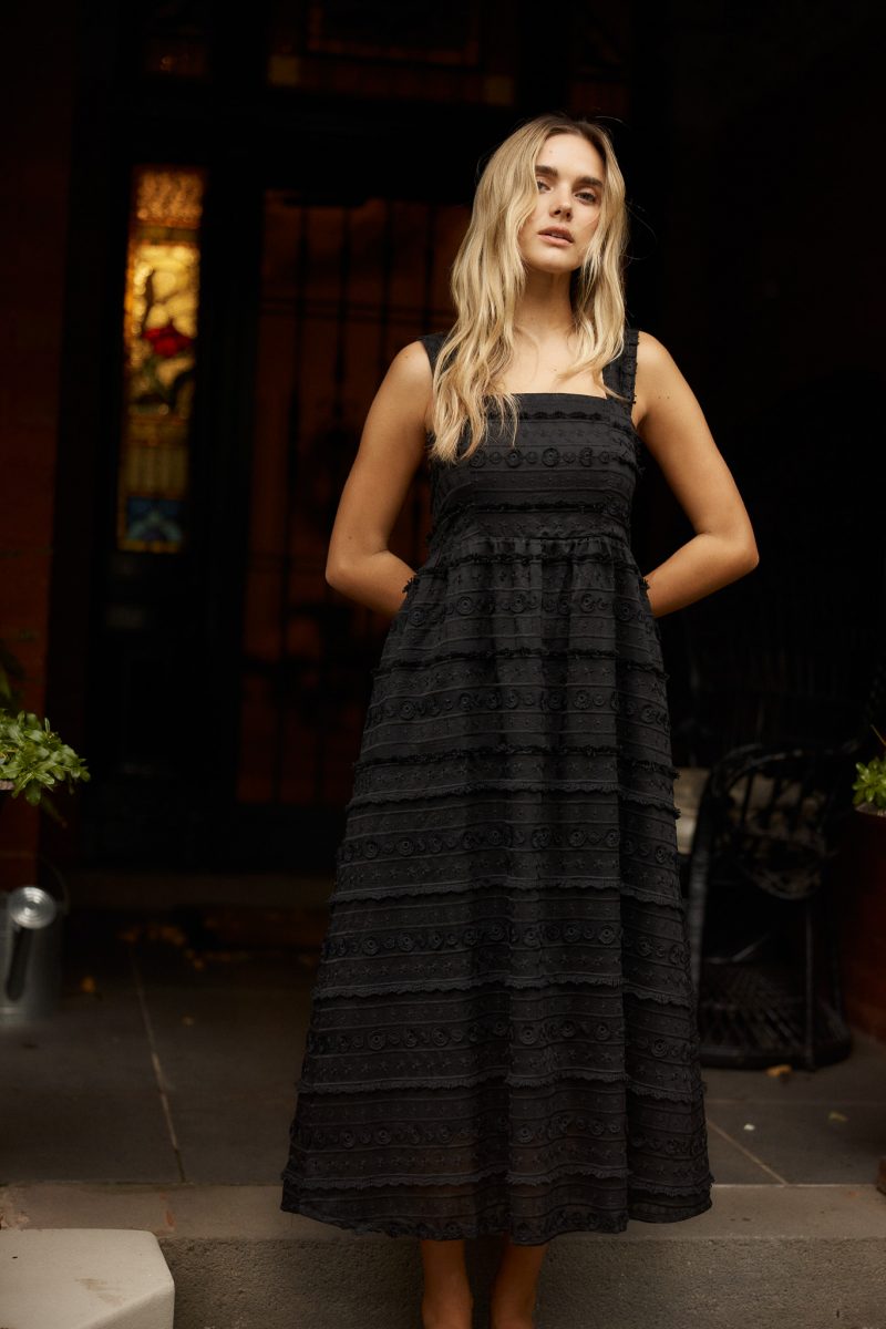 The Sierra Lace Dress captures timeless elegance through intricate texture. Fully lined and crafted in detailed lace, it features adjustable straps and a flowing maxi silhouette. The perfect blend of femininity and sophistication. Effortless beauty with refined allure.