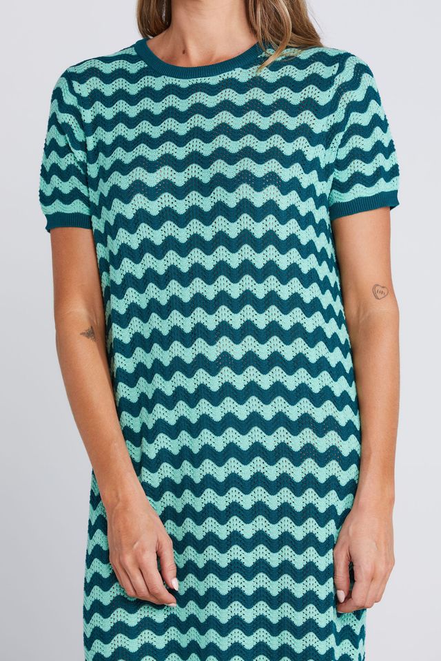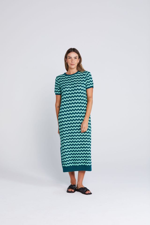 The Squiggle Dress is the dress version of our popular Squiggle Tee, and it’s knitted in 100% Cotton.