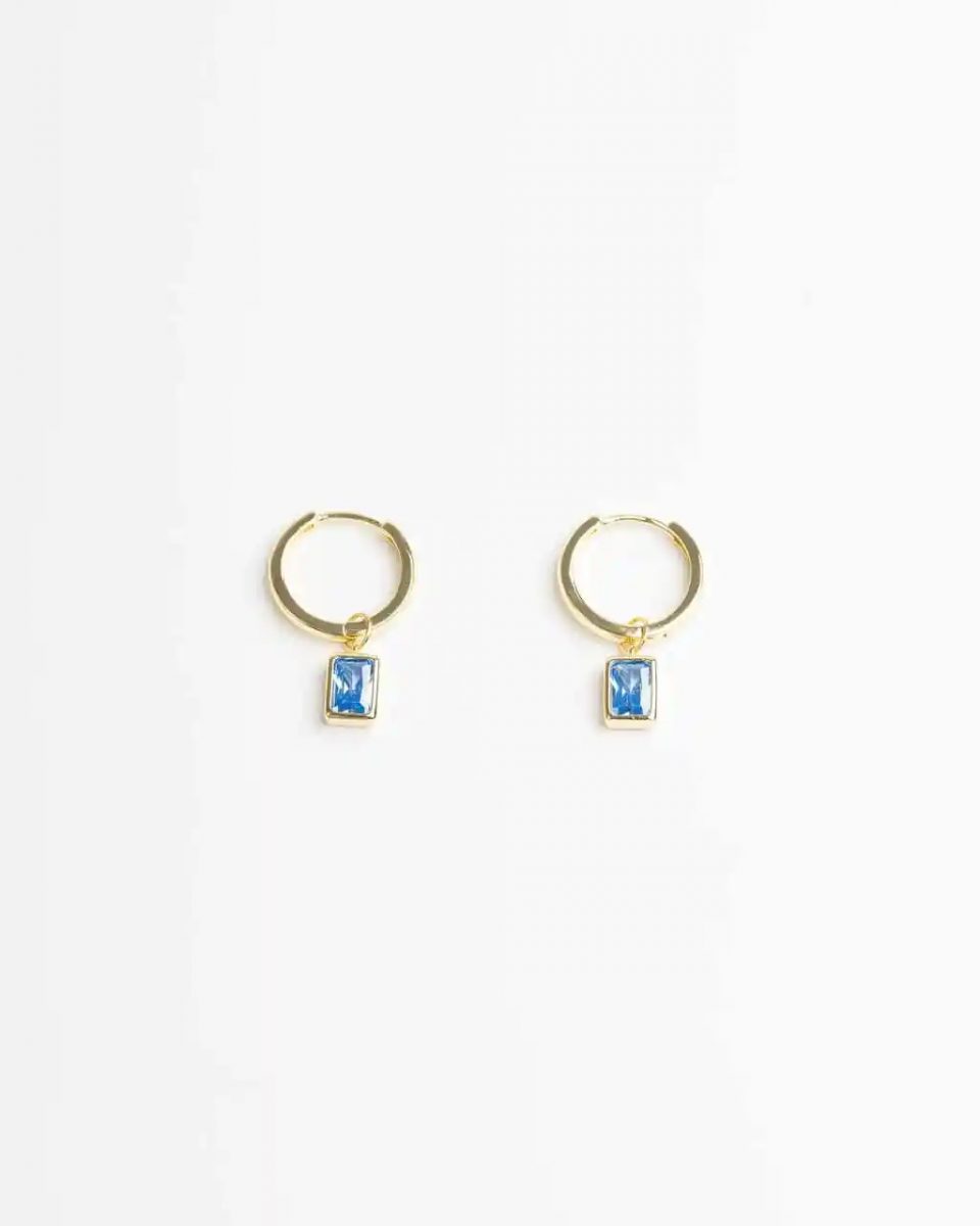 Gold plated huggie hoop earrings with hydro quartz pendant in blue