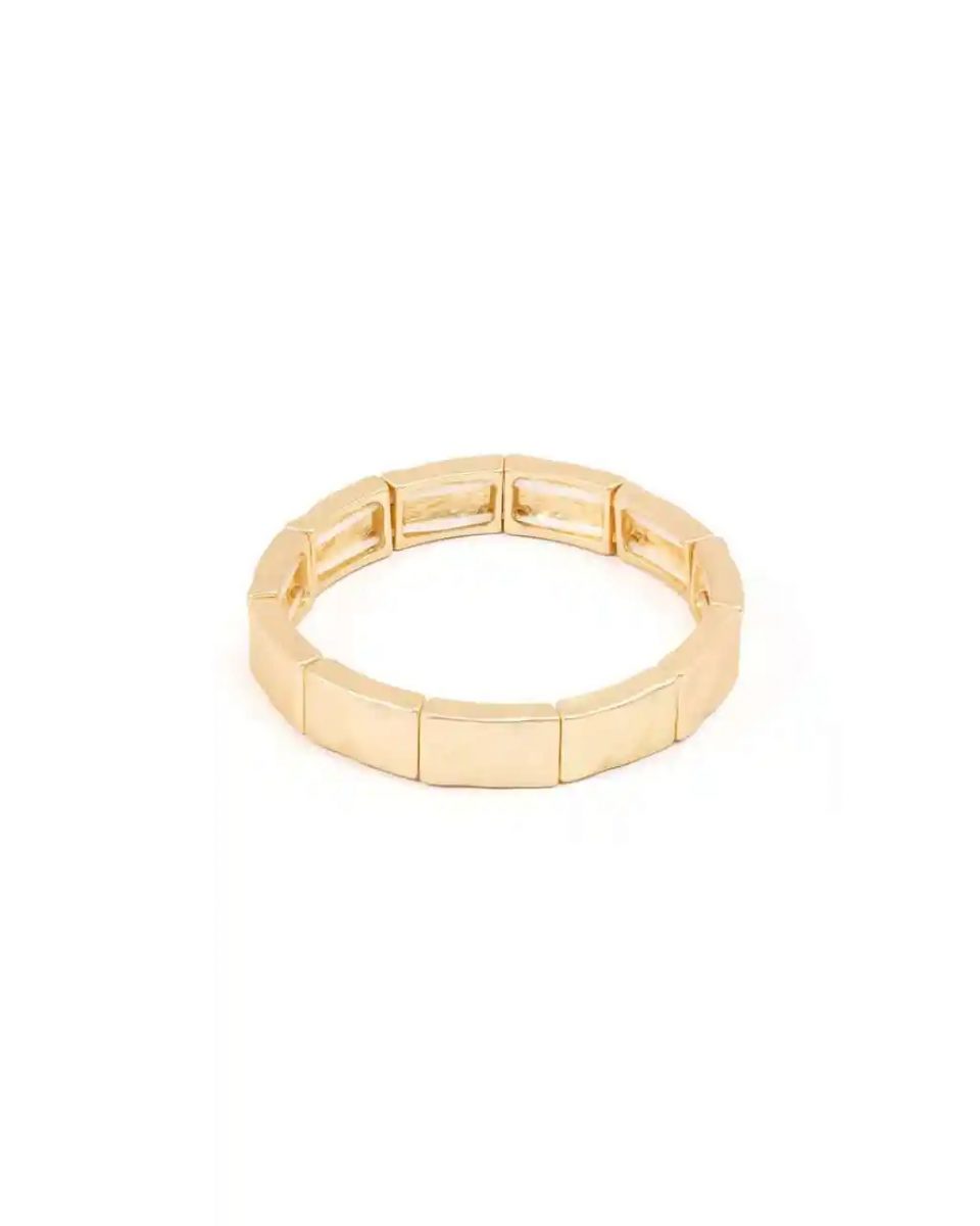 Gold plated stretchy bracelet in a matte finish.