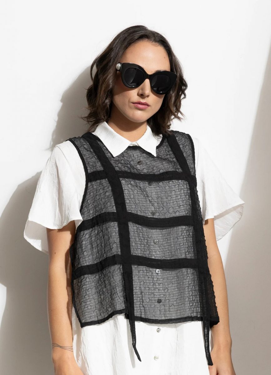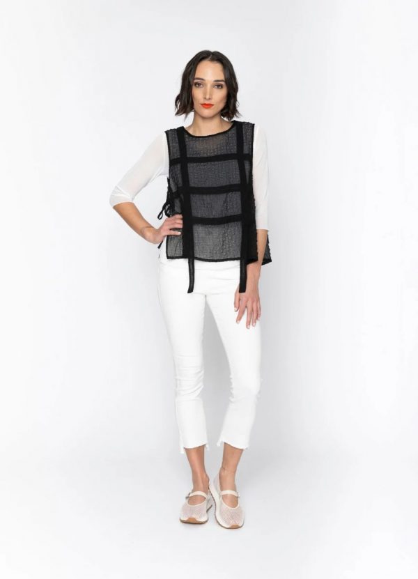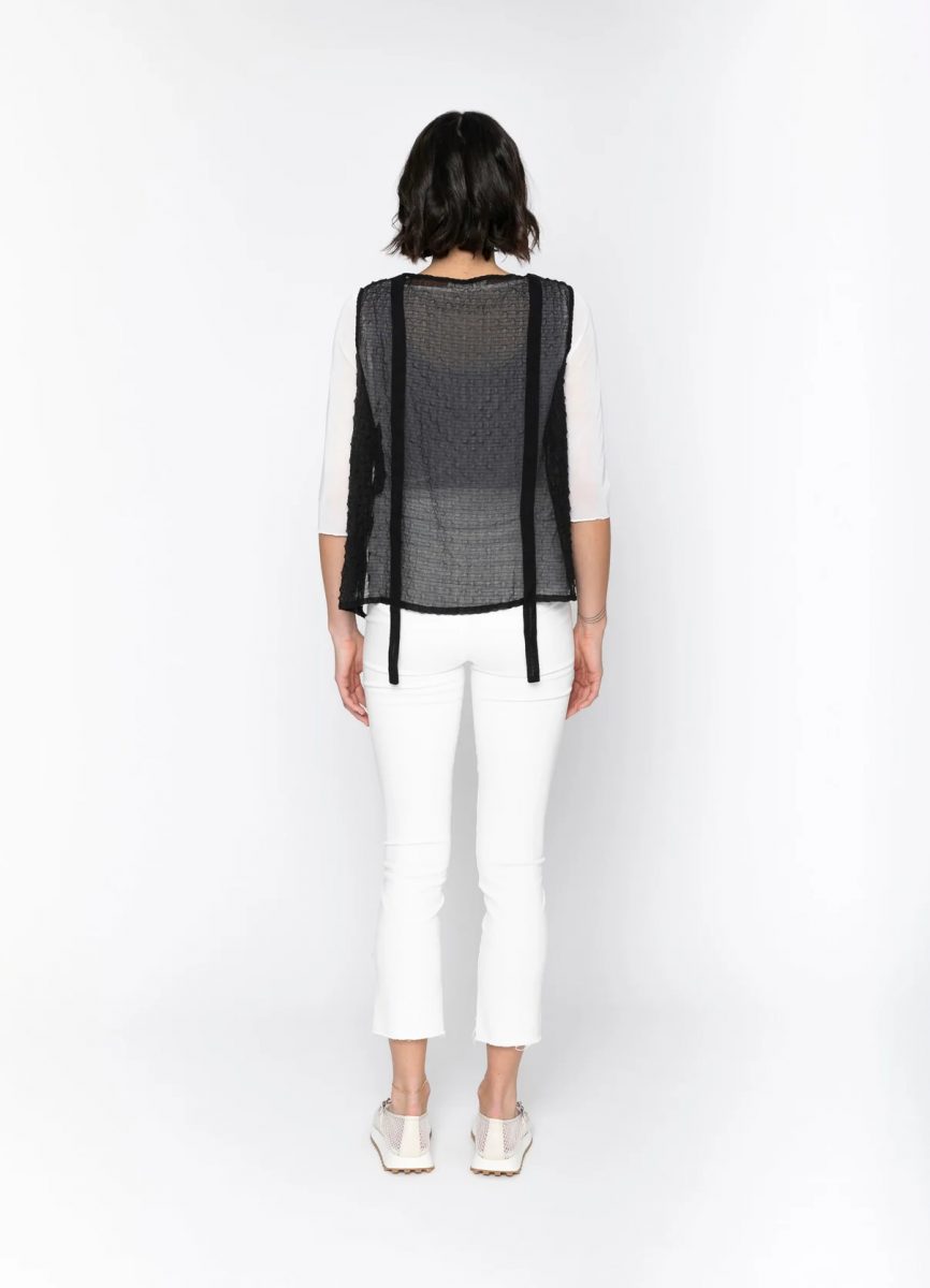 This sheer, relaxed panel tie vest adds an elegant touch to your wardrobe, effortlessly elevating any look. Wear it over, oversized shirts or skin tie tops this little number will bring your styling to a whole new level.
