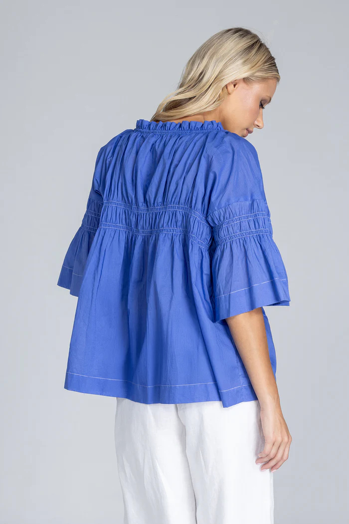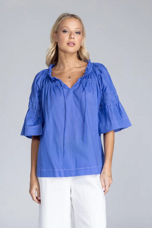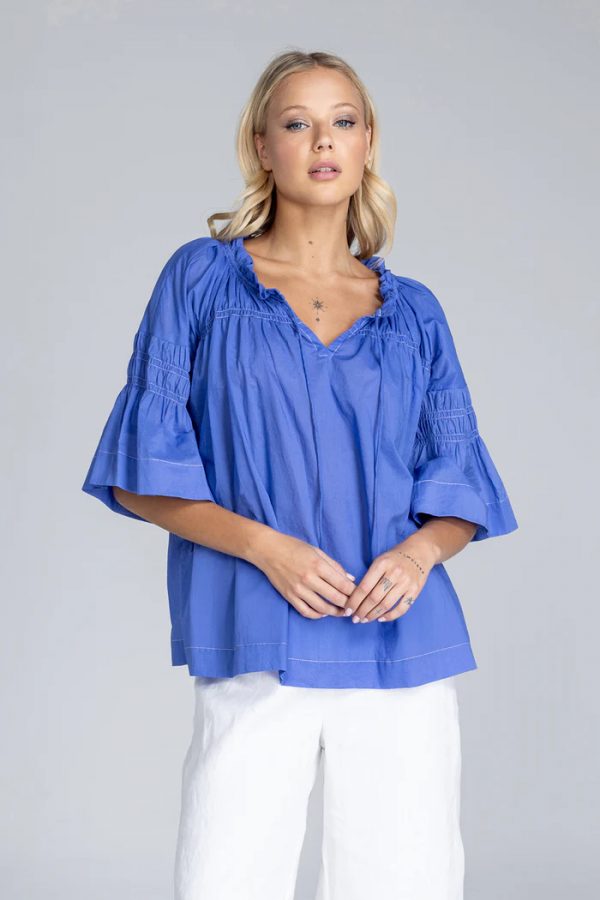 A fresh take on feminine dressing, the Thea Top in Juniper Blue is your go-to for effortless elegance.