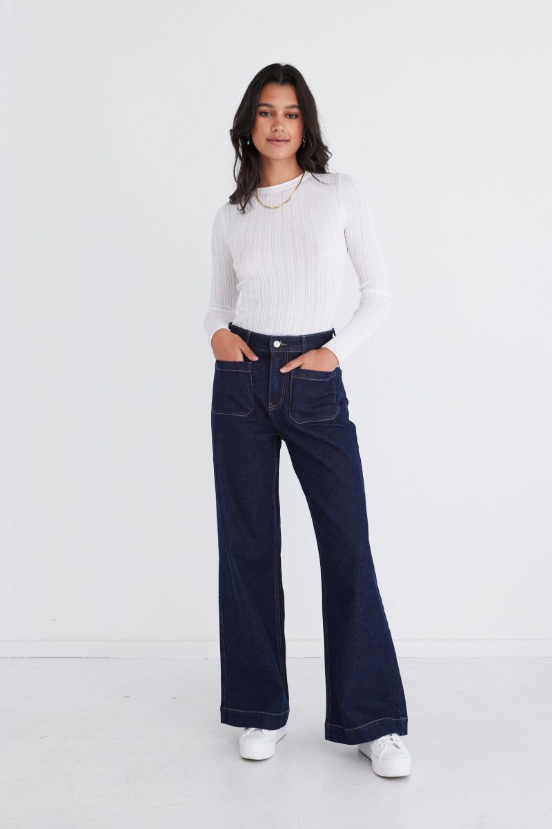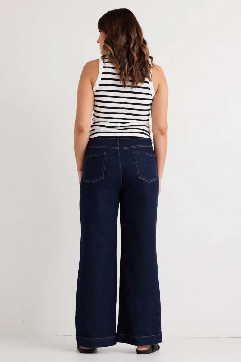 This wide leg jean, features uniquely designed front pockets that add a touch of sophistication to your look. We love these indigo jeans as not only do they look great, but they feel great too.